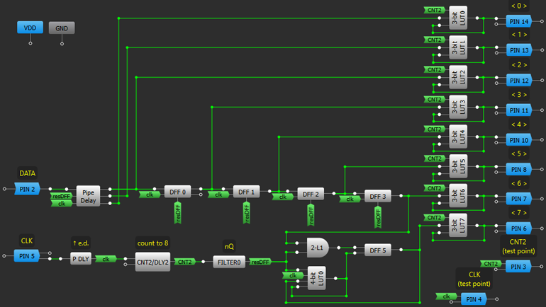 基于3LUT0÷3LUT7的八個(gè)鎖存器,用于將并行代碼饋入輸出PIN