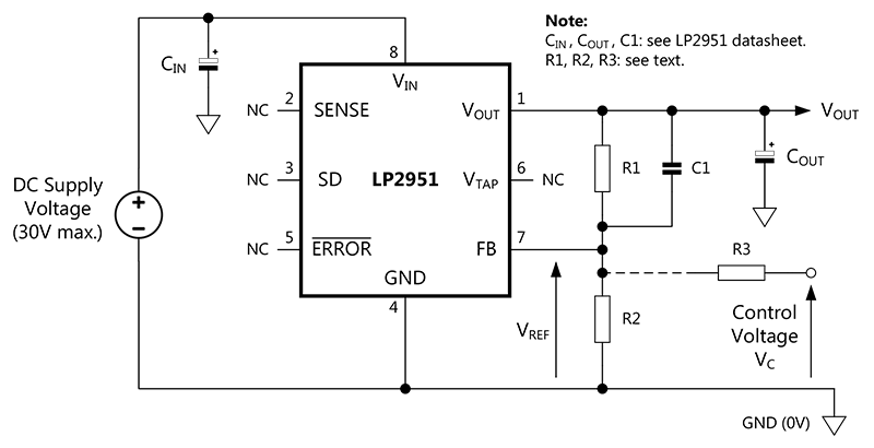 基于LP2951創(chuàng)建通用的電壓控制穩(wěn)壓器