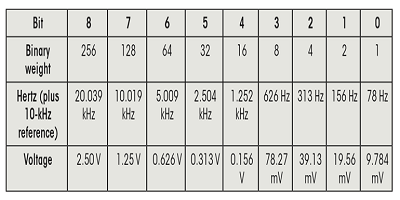 3.該表顯示了刻度2的頻率到電壓的轉(zhuǎn)換。