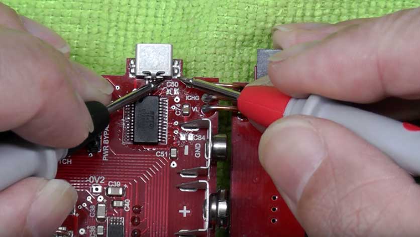 檢查接地座子、連接器和IC上其他引腳之間的電阻。這里顯示的是USB連接器。